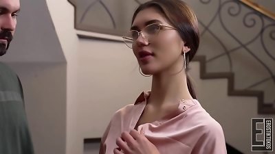 当我在厨房里与继母的伴侣聊天时,我最终按摩了她的摇摇欲坠,直到我钉住她。她不知道我在搞砸她。
